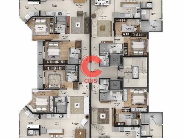 Apartamento de 2 dormitórios, sala de estar com sacada integrada, cozinha, banheiro social, área de serviço, churrasqueira.